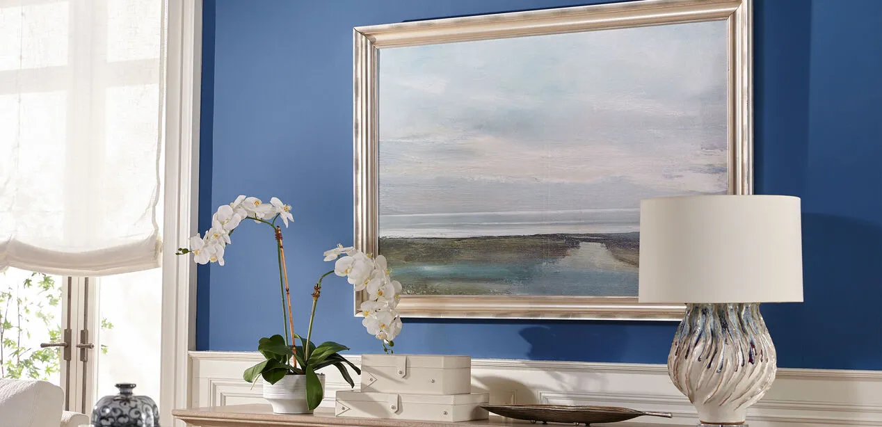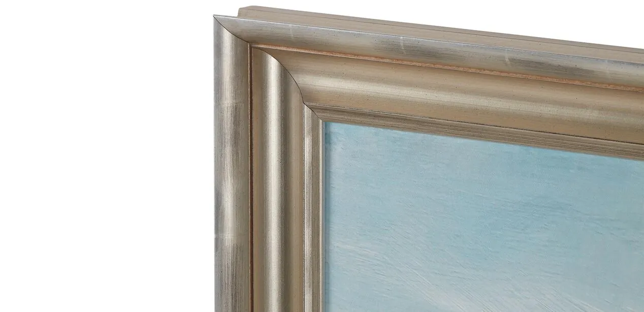 This "big sky" landscape gets a little bit of shine from its stunning brushed champagne frame. The tranquil scene and colors can't help but draw you in.