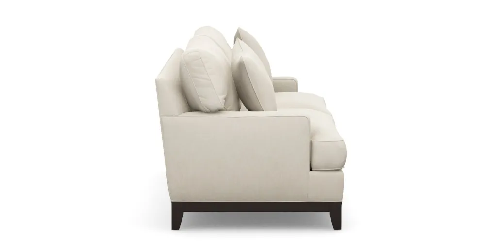 This sofa features a signature wood base and track arms with loose back and seat cushions that make Arcata suited for both casual and formal spaces