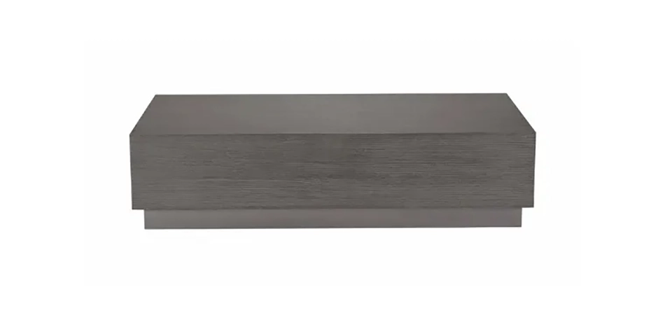 Neoclassical meets minimalist in our Braemore plinth coffee table. Its plinth base is crafted from nickel, with a wood top that's wire-brushed by hand, bringing out the wood grain to mesmerizing effect. If you're looking for a wonderfully understated rectangular coffee table for a glam living room, Braemore's architectural look is the epitome of simple sophistication. The transitional look also complements many other designs; it will be a conversation piece no matter how you style it. Braemore is a minimalist, sculptural plinth-base coffee table; its transitional look centers any décor The plinth base is banded in steel, which is finished in a warm satin nickel for subtle yet distinctive luster Multilayered finish is wire-brushed by hand to bring out the wood grain Available in multiple finishes: Coffee tables with the unique Alabaster (733) finish are crafted from olive ash burl, with olive ash burl veneers* arranged in an elegant parquet pattern Coffee tables with the more casual Gray Flannel (483) or Mink (487) finishes are crafted from quarter-sawn oak,* with hand-applied oak veneers for a consistent and visible surface grain For a unified style statement, pair this rectangular coffee table with the Braemore Rectangular Plinth-Base Console Table and our Braemore Round End Table; for a similar style sensibility in smaller spaces, see our Braemore Round Plinth-Base Coffee Table Easy-to-use levelers ensure stability, even on uneven floors