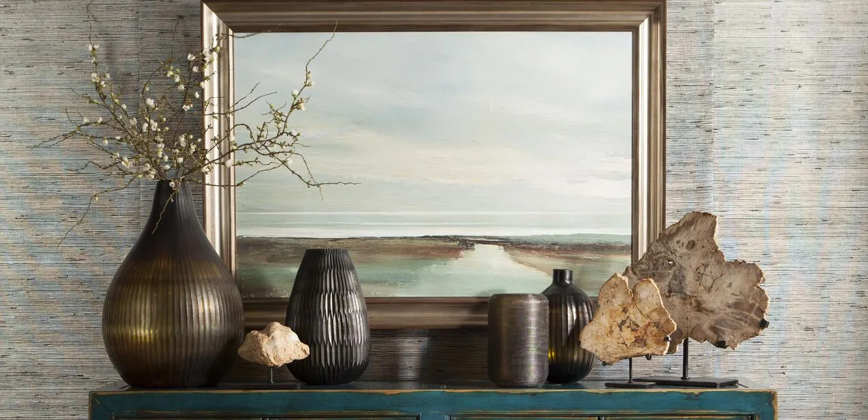 This "big sky" landscape gets a little bit of shine from its stunning brushed champagne frame. The tranquil scene and colors can't help but draw you in.