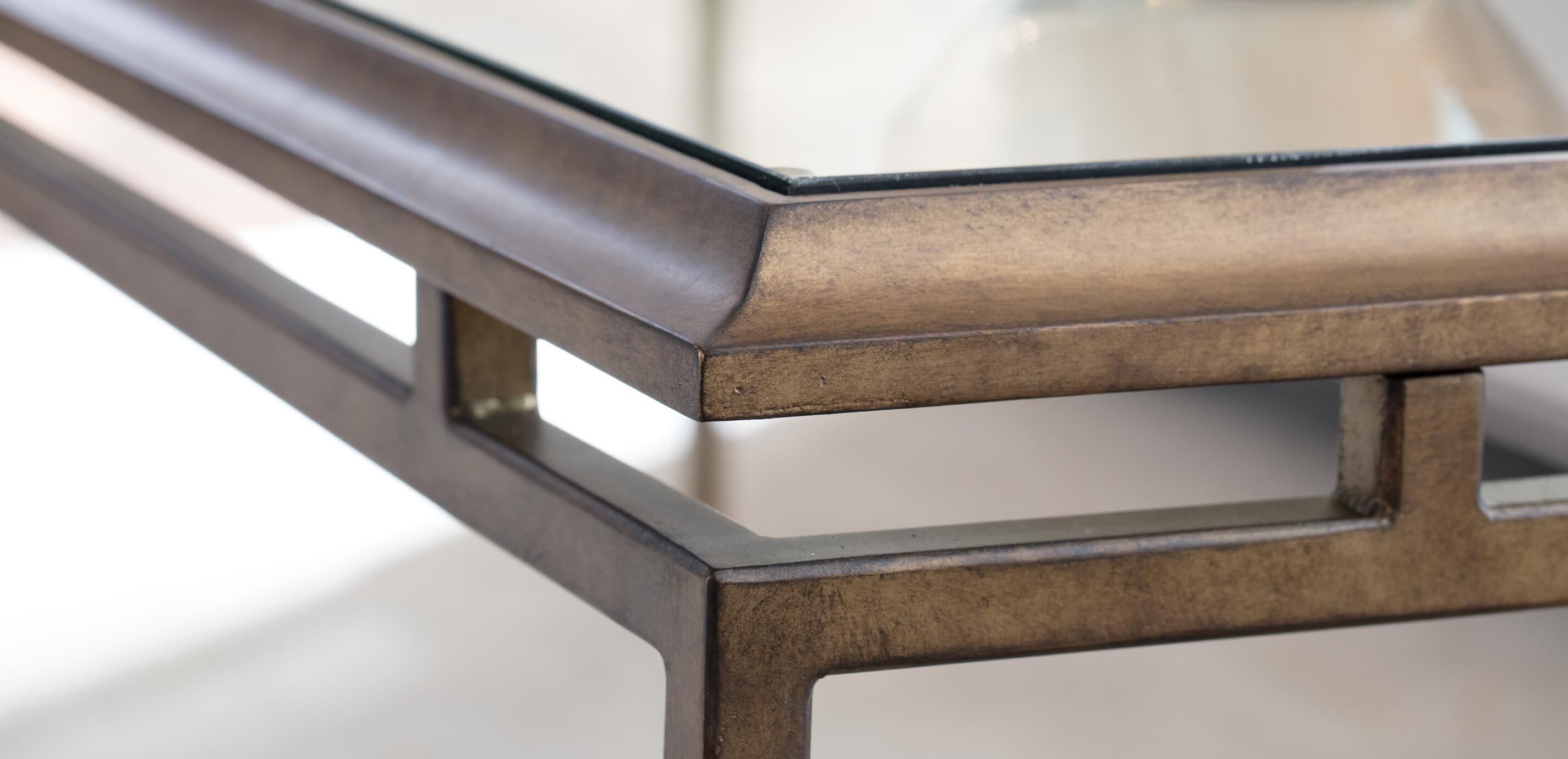 Showcase your favorite plants, stack your most beloved books, or relax with an after-dinner drink in a living room graced by our rectangular Beacon coffee table. Its well-traveled vibe and clean lines set an elegant tone while its glass top reflects and channels natural light. Crafted from metal tube frame and tempered glass top Inset tempered glass top Steel frame with decorative antiqued finish Beacon Square Coffee Table, Beacon End Table, Beacon Console Table also available