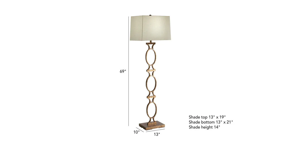 Crafted from iron with a two-toned gold and silver finish, our Owen floor lamp’s patterning is reminiscent of intricate jewelry links. The tones blend well with today’s upscale—and on-trend—designs.