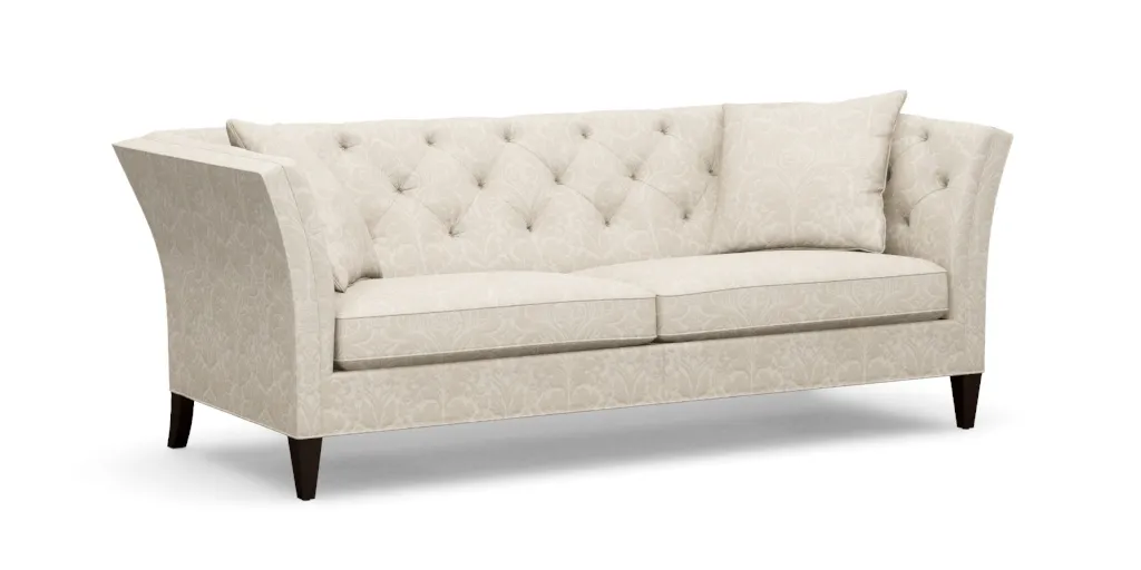 This sofa features deep seats, a high back and sides, and tapered legs. Stately curved and unfussy details. Shelton is all about relaxed glamour with classic diamond tufting and perfect curves.